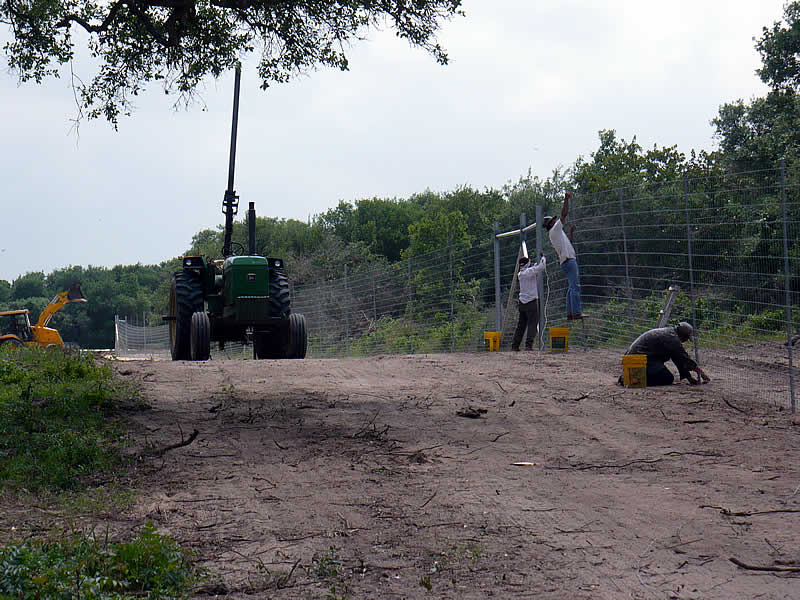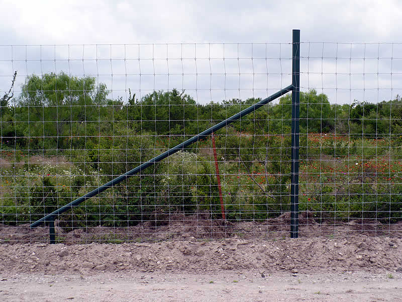 Their number one goal on each deer fence construction job is to understand and accommodate the needs of the animals, facilities and ranch owners. All fabrication, construction, and installation of braces, gates and high deer fence are done on-site. Construction of your deer or game fence can vary depending on the terrain and your specific needs. Gates are also built according to your needs. Typically, we build 8' foot tall deer and game fencing with a fixed knot system that gives maximum durability to your fence when pushed against by either deer or game.