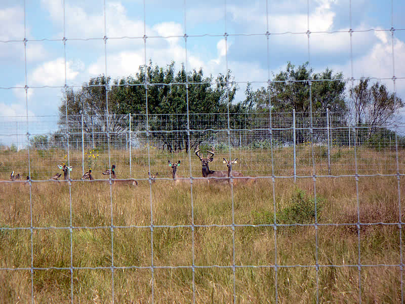 Deer Fence sometimes is called Game-Proof Fence or simply Game Fence. Some people even call it High Fence. Basically is all the same fence. The benefit to this type of fencing is that keeps animals or humans either "in" or "out". Whether you are trying to maintain deer (whitetail, axis, fallow, silka or mule deer) elk, antelope, cattle, buffalo or other exotic animals, it is by far your best choice.